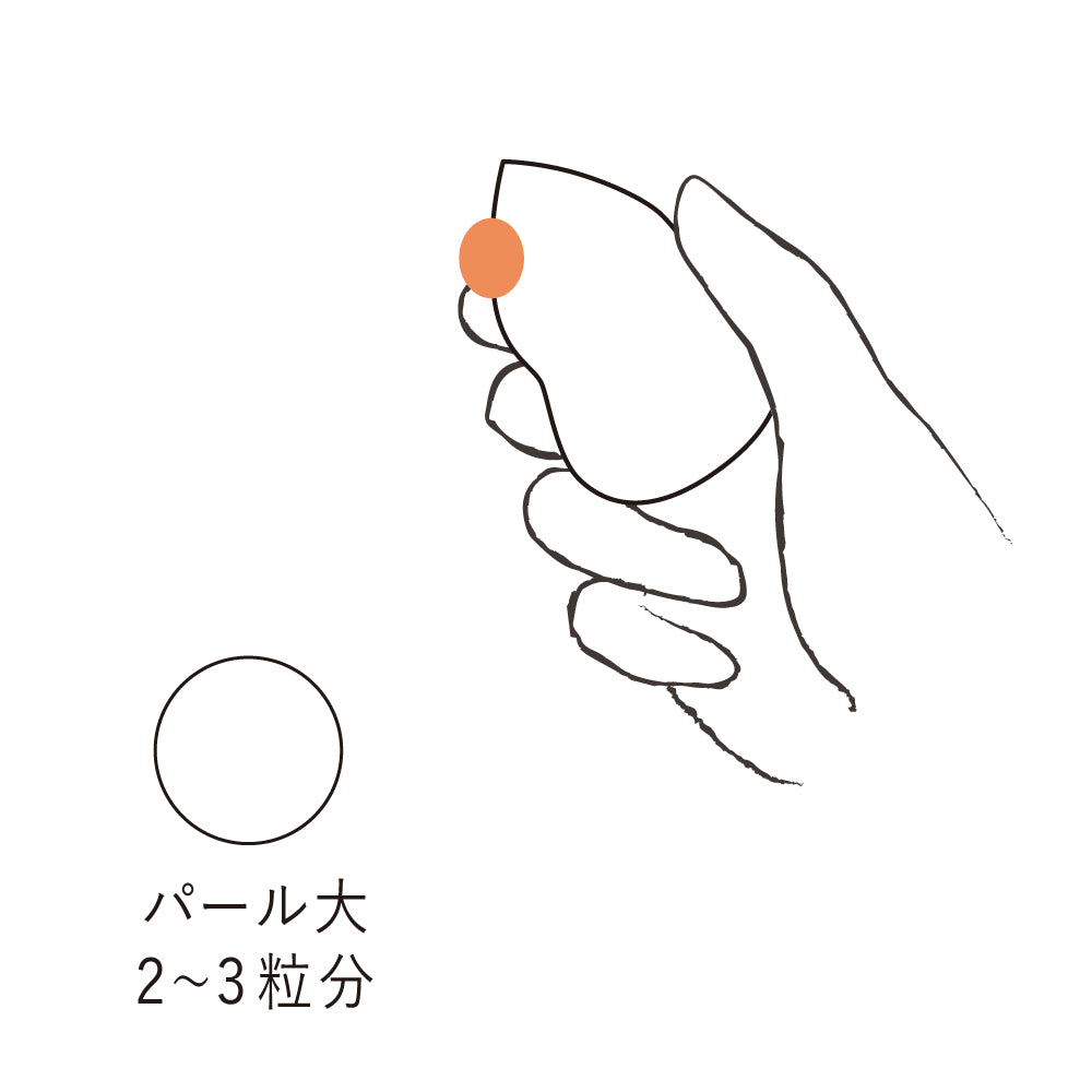モイストデイカラーをスポンジの先(とがった方)に適量(パール大2~3粒分)取ります。