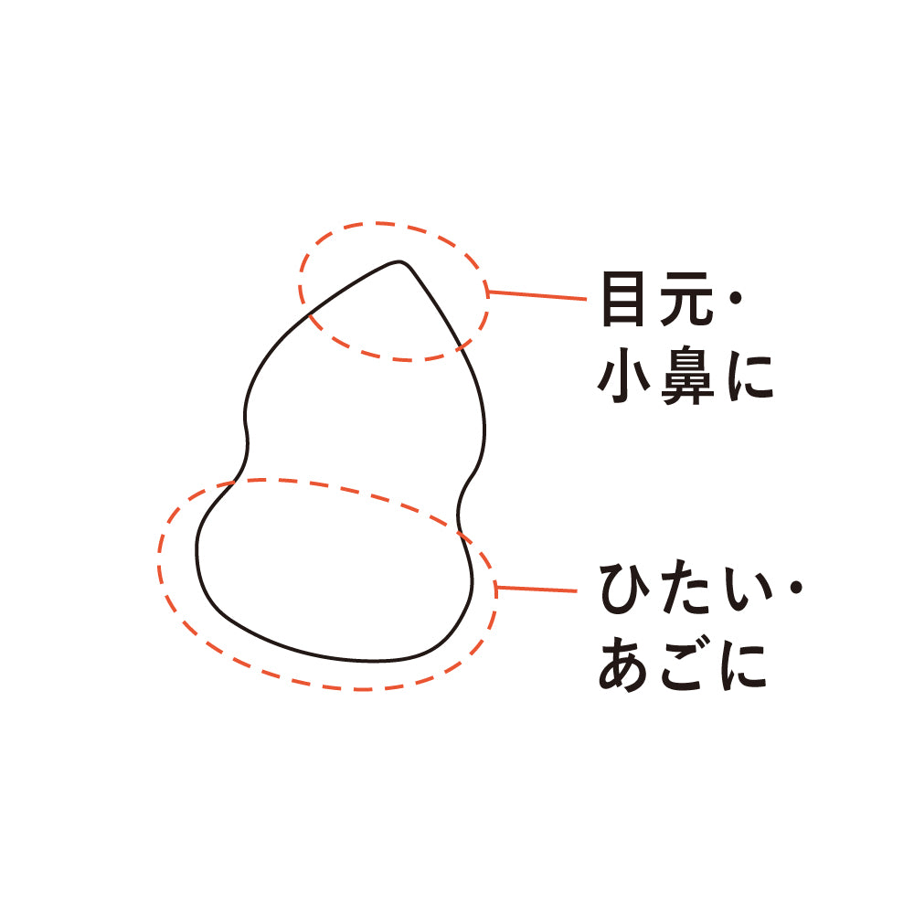 ひたいや頬など全体に伸ばすときは広い面を、小鼻のきわや目元や目の周りなどの細かい部分は、スポンジの先端の使用がオススメです。
