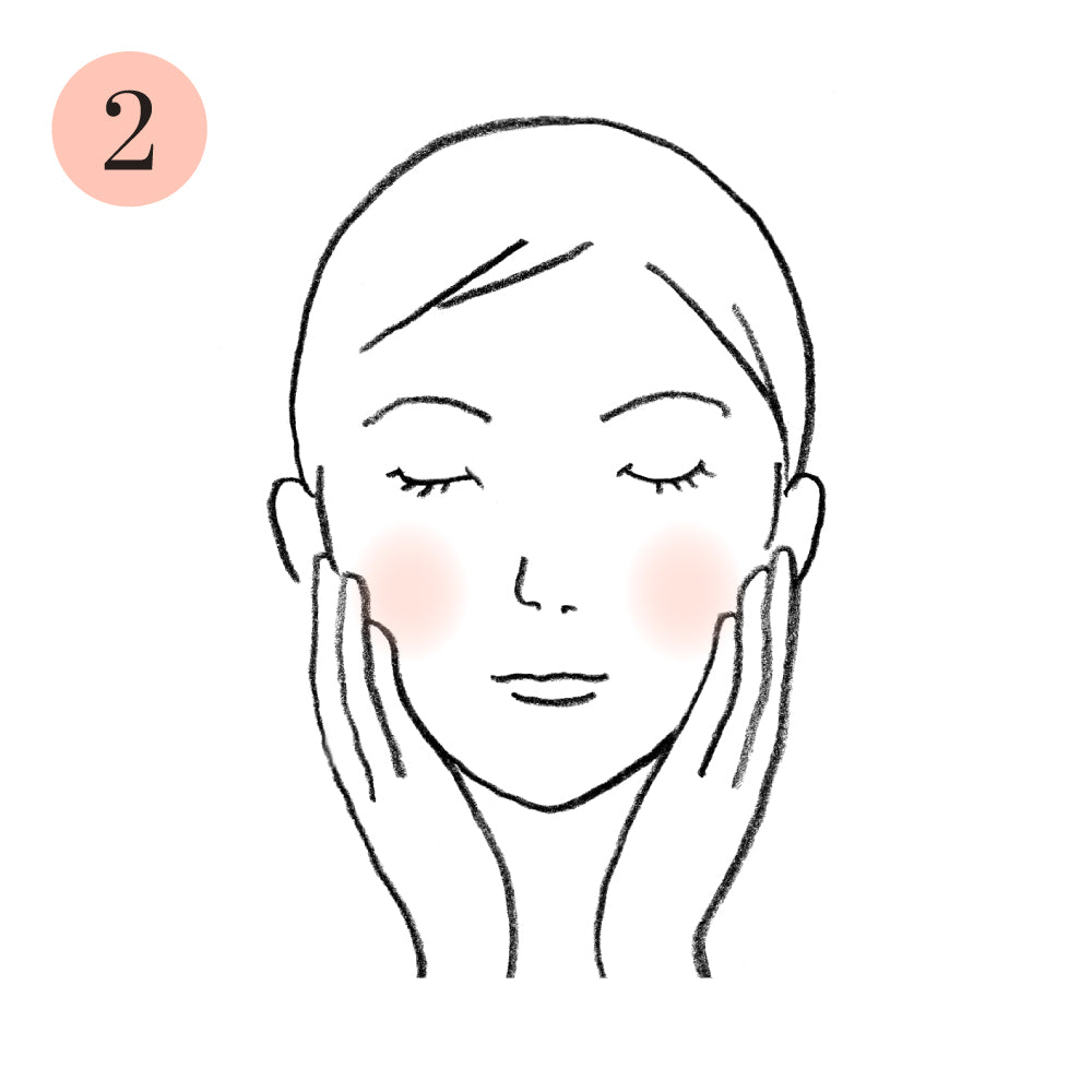 中指と薬指の腹を使って、やさしく円を描くようにメイクや汚れとなじませます。 -